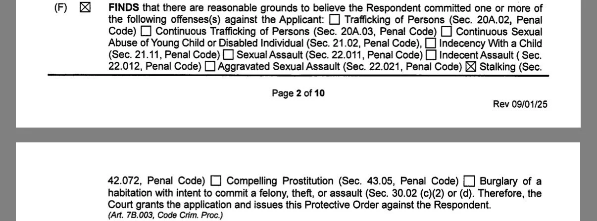 Despite my court-ordered legal protections, ongoing violations continue. Everything is being documented and prepared for further review by Austin PD and the Court - please get in touch if you can provide tangible evidence of violations.
